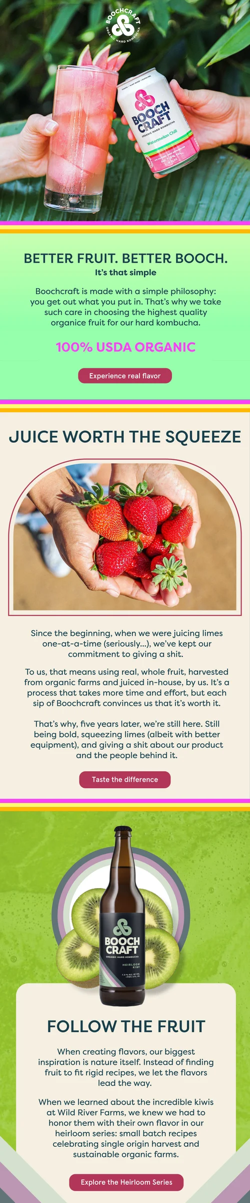 In email, using the same bright color palette, we crafted more thoughtful messages to further illuminate this company’s commitment to their craft.