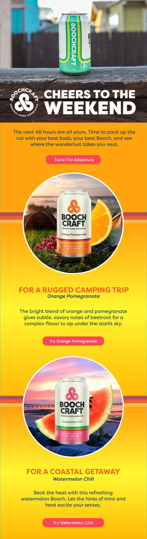 Boochcraft’s hard kombucha stands apart from its competitors for its exciting, bold flavors crafted from gorgeous, organic fruit. Which we sought to capture in this branding campaign.