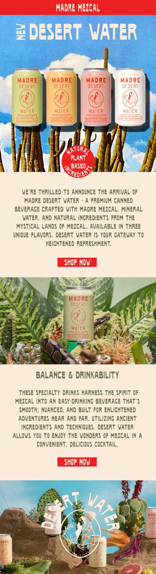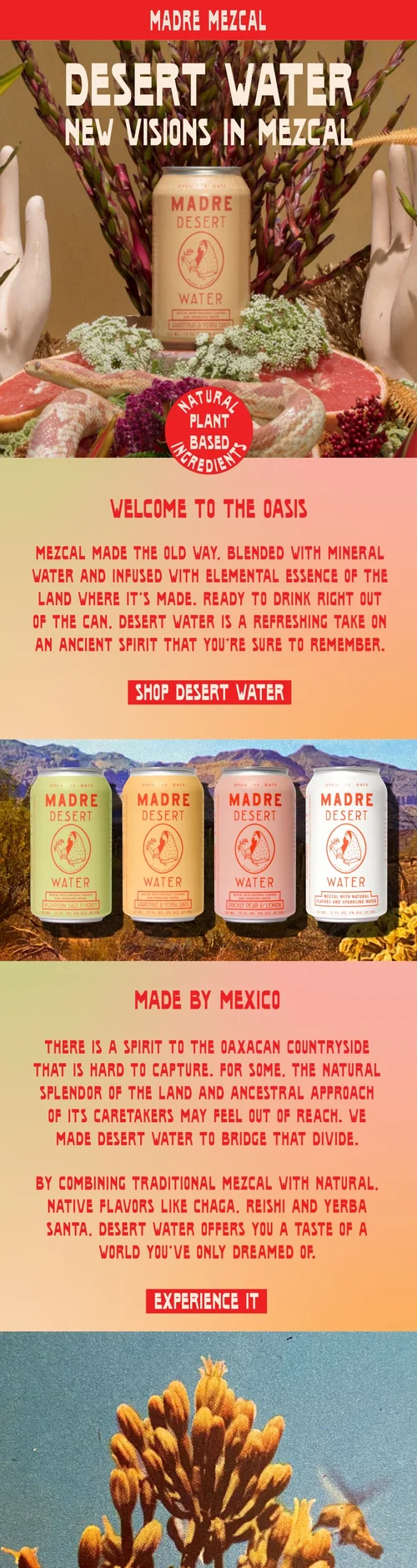 To introduce their new line of mezcal cocktails, Desert Water, we used the rugged beauty of Oaxaca for the backdrop for an invitation. The serene designs bolstered copy crafted to give the reader a sense of curiosity and wanderlust.